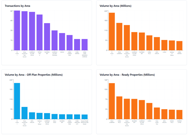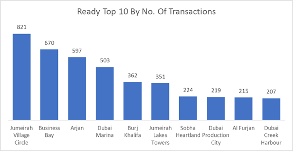 Ready demand remained broad-based, with flats leading, and hotel/room product showing a more material footprint than in off-plan. The highest ticket value for flats was Jumeirah Bay – AED71.90M,and for villas was Palm Jumeirah – AED220.0M.